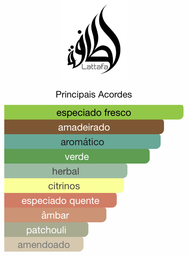 Safeer de Lattafa Perfumes é um perfume Compartilhável. As notas de topo são: Artemísia e Bergamota. As notas de coração são: Notas Herbais, Notas Verdes e Notas Especiadas. As notas de fundo são: Madeira Guaiac, Junípero ou zimbro, Notas de Nozes, Patchouli, Olíbano, Cominho e Ládano.